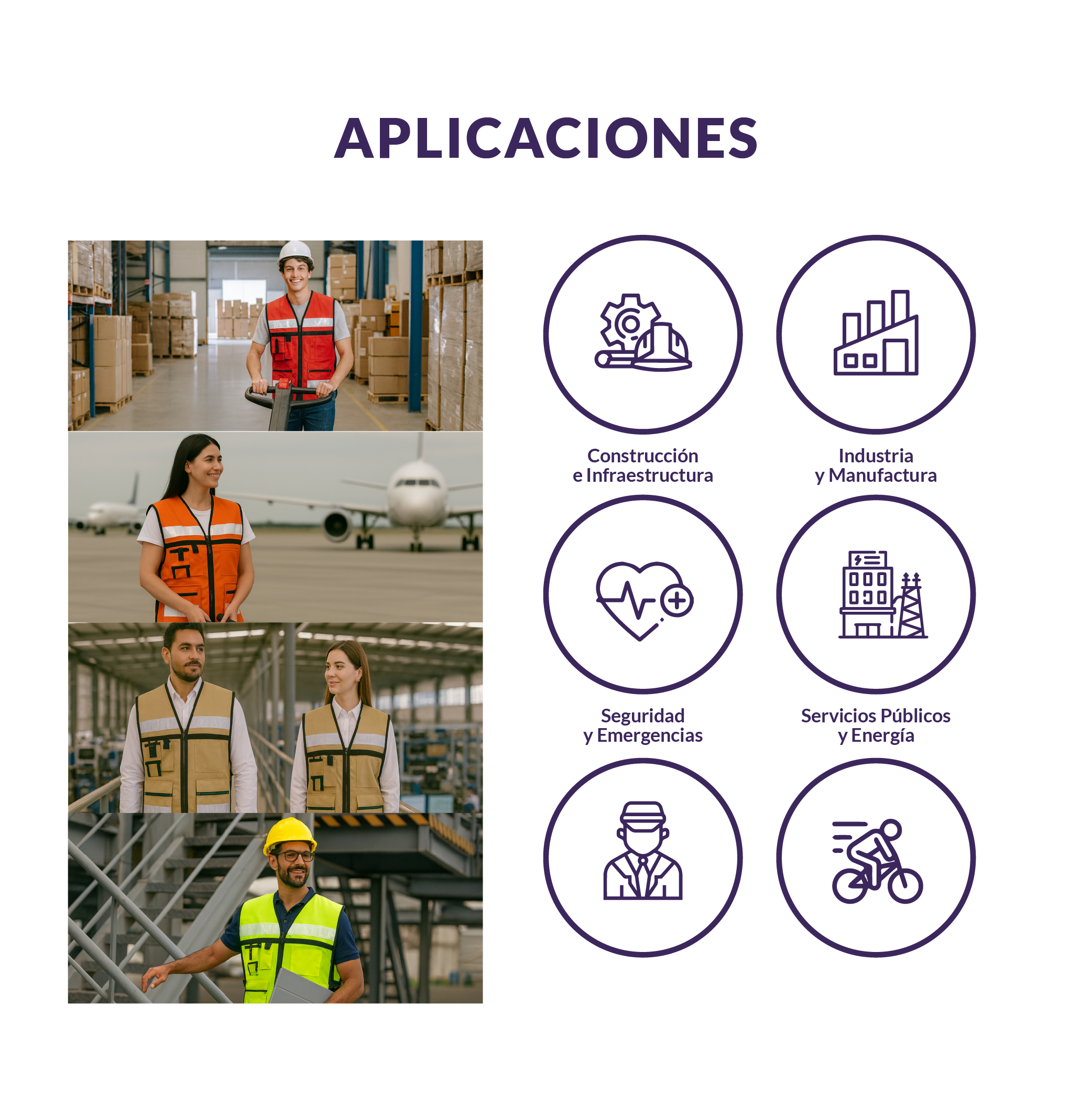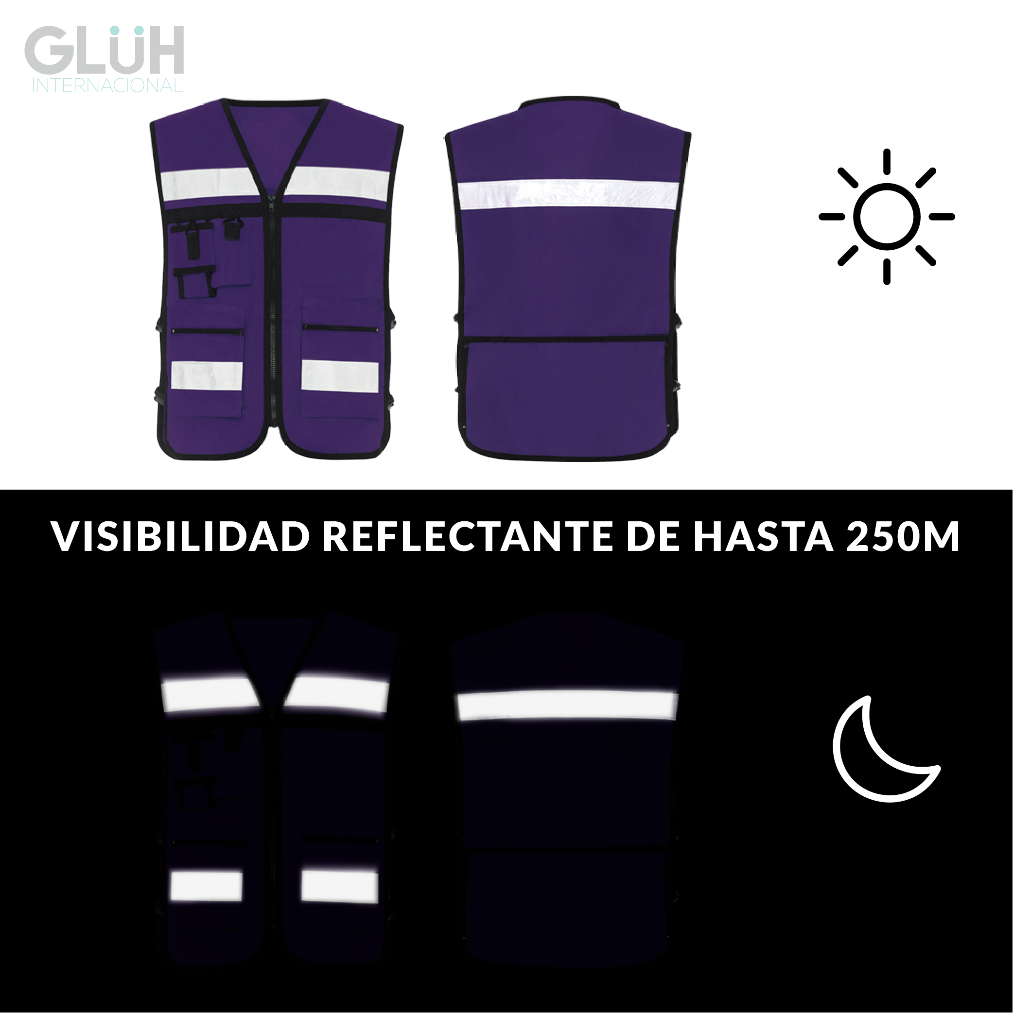 Cintas reflejantes tipo cristal en espalda y frente para mayor visibilidad