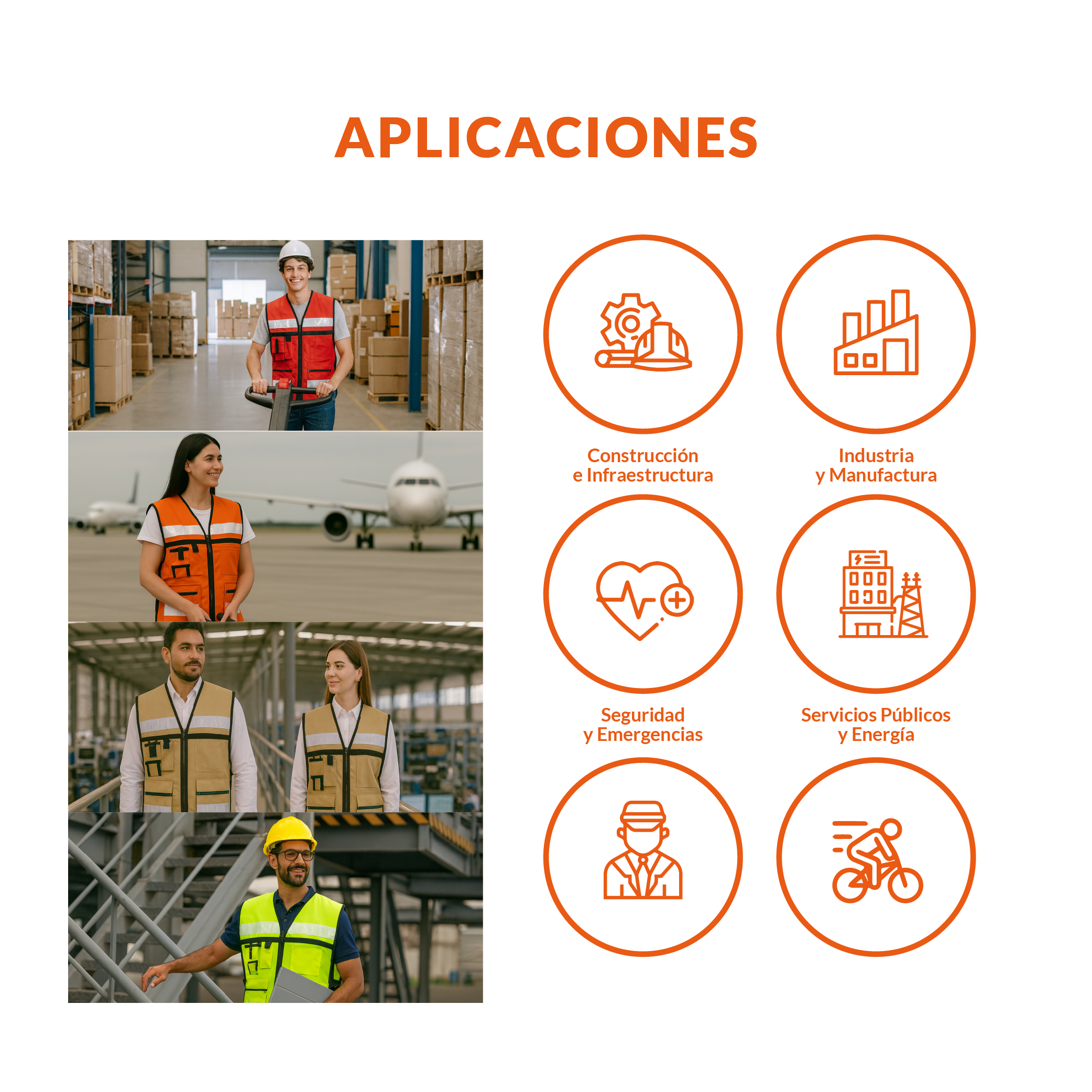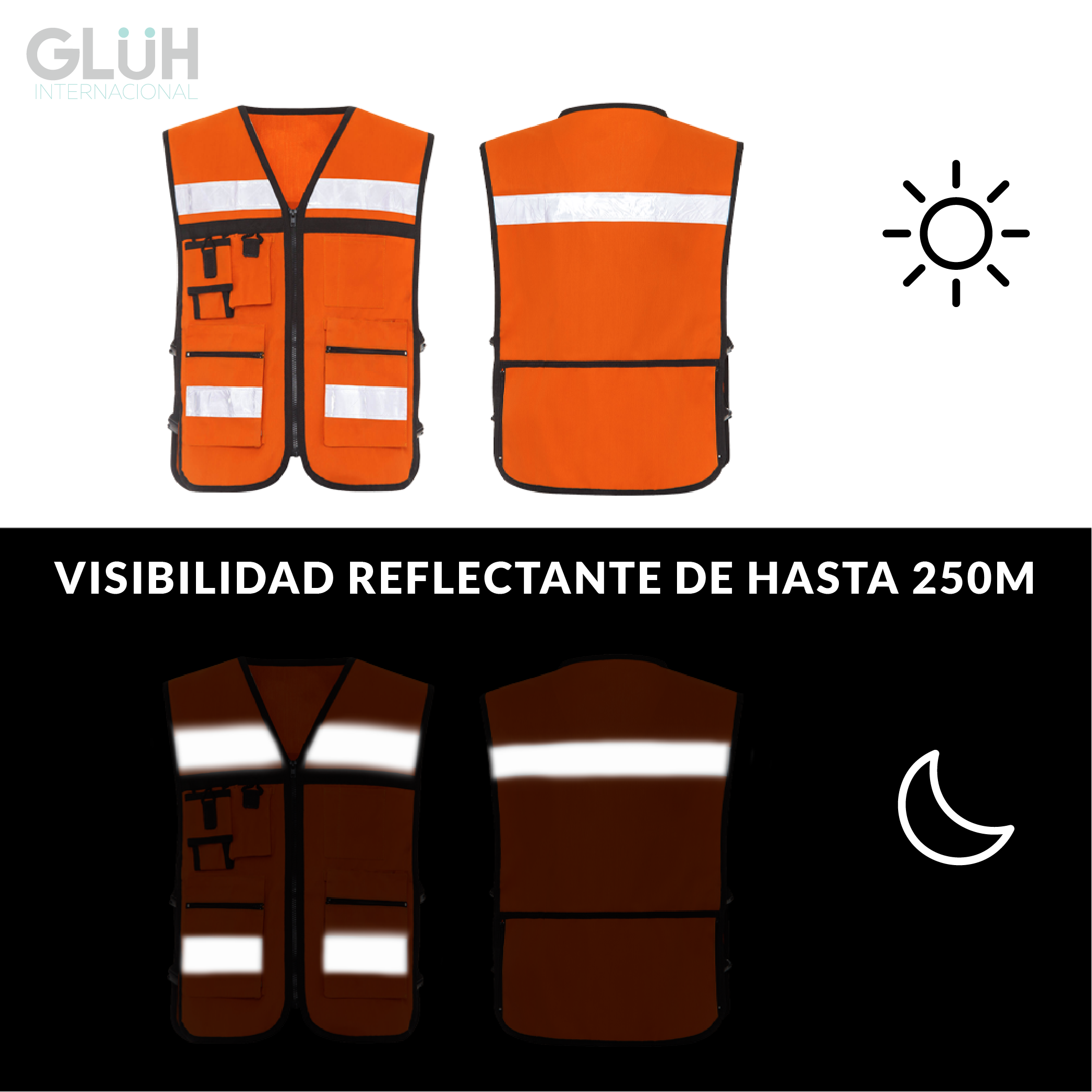 Cintas reflejantes tipo cristal en espalda y frente para mayor visibilidad