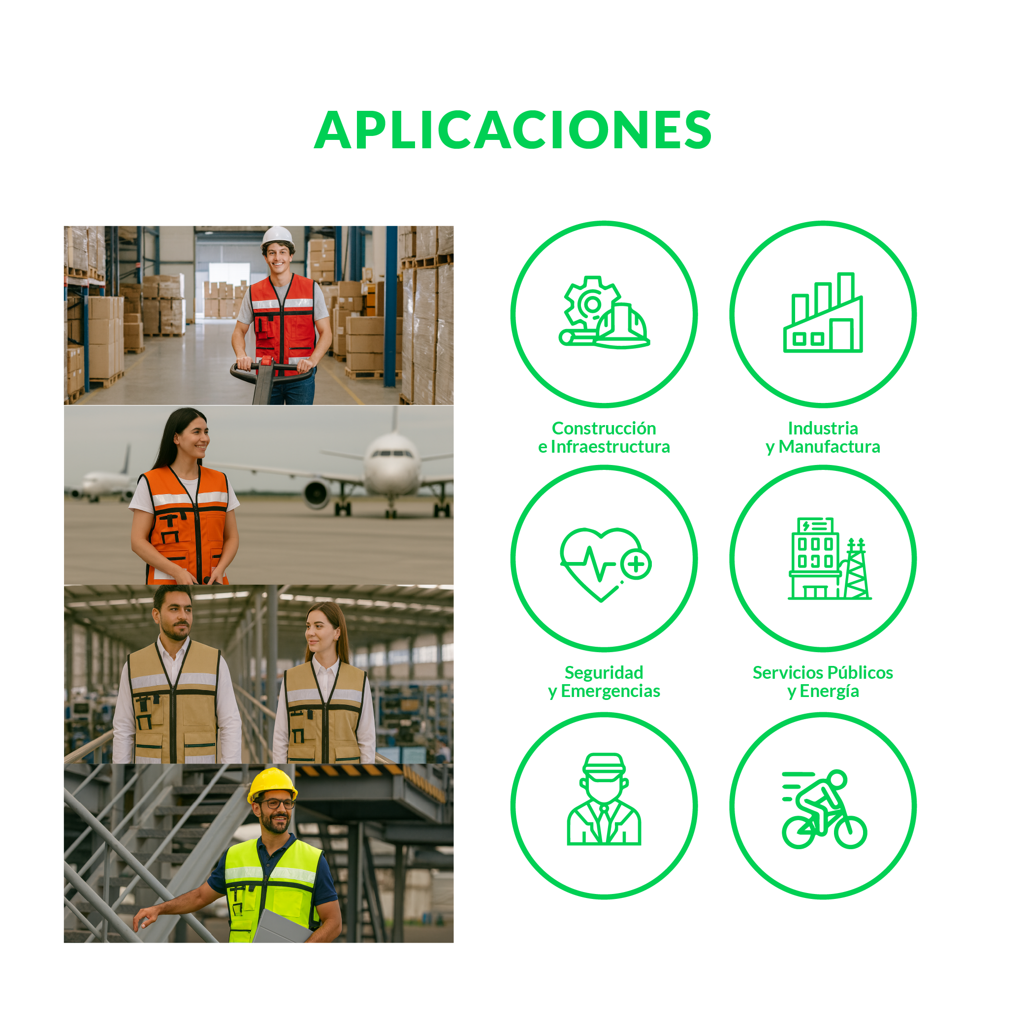 Cintas reflejantes tipo cristal en espalda y frente para mayor visibilidad