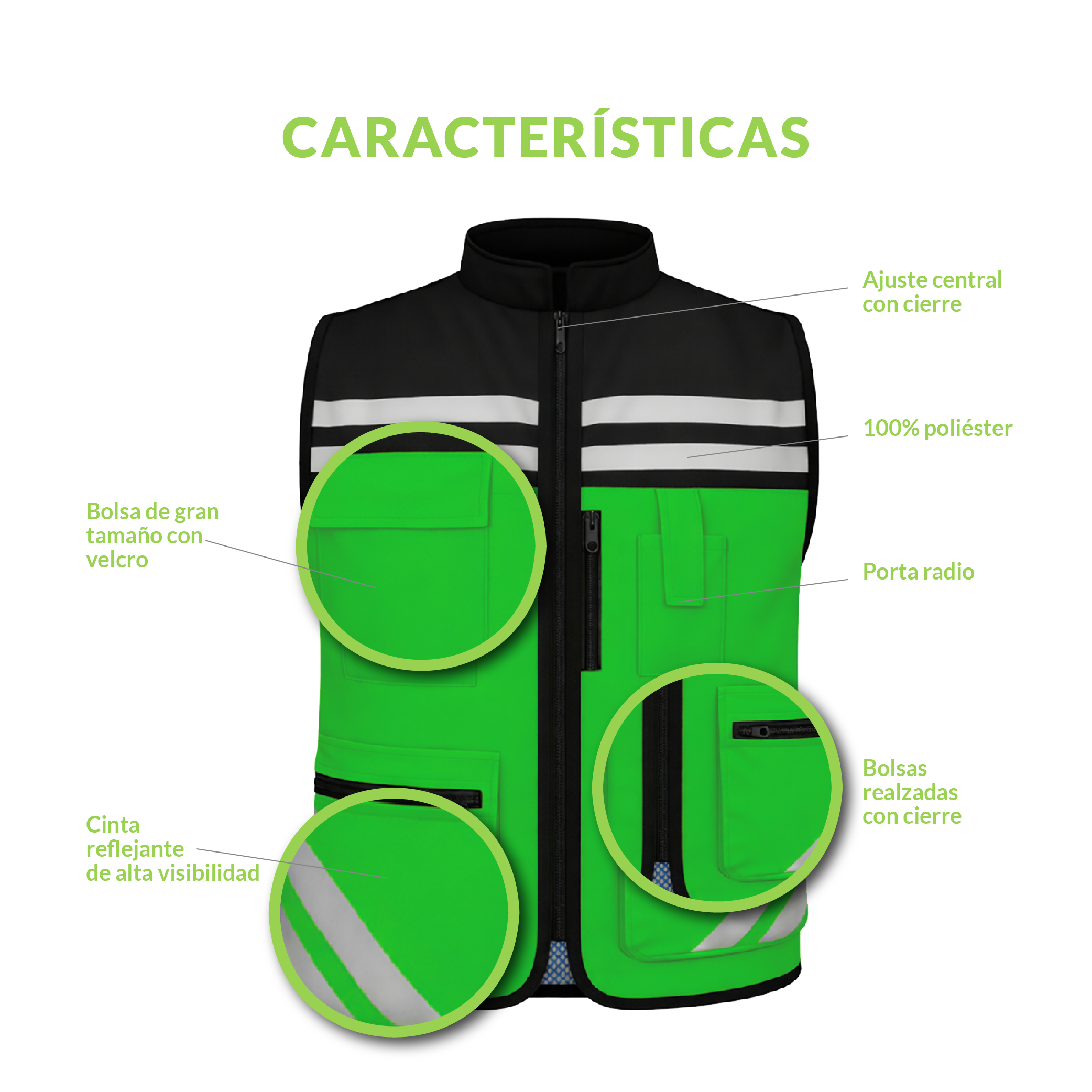 El chaleco de seguridad reflejante tipo brigadista Spark Gluh combina alta visibilidad, resistencia y funcionalidad para entornos laborales exigentes. Su diseño en gabardina con malla trasera ofrece transpirabilidad, mientras que sus cintas tipo Reflex brindan seguridad tanto de día como de noche.