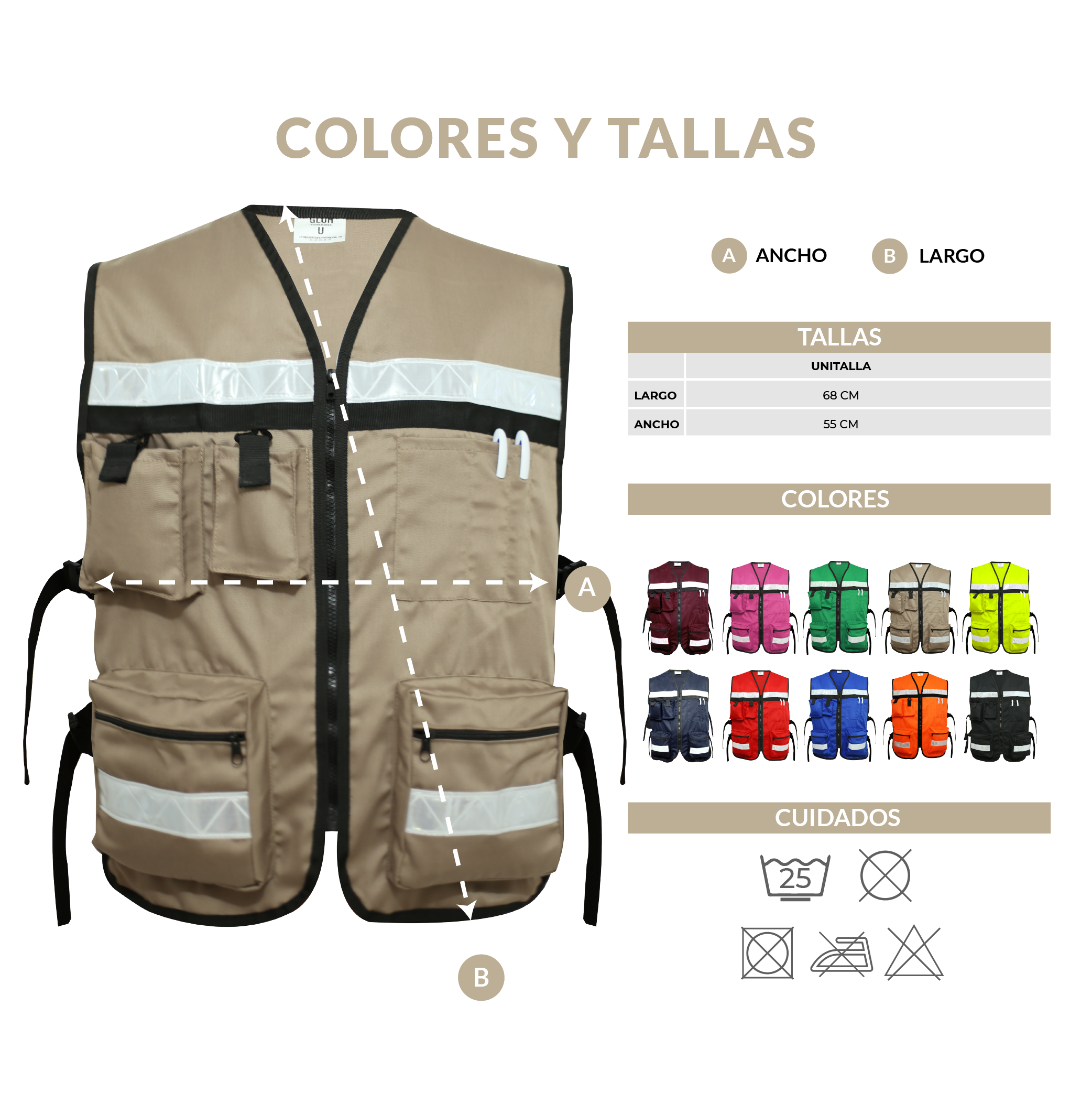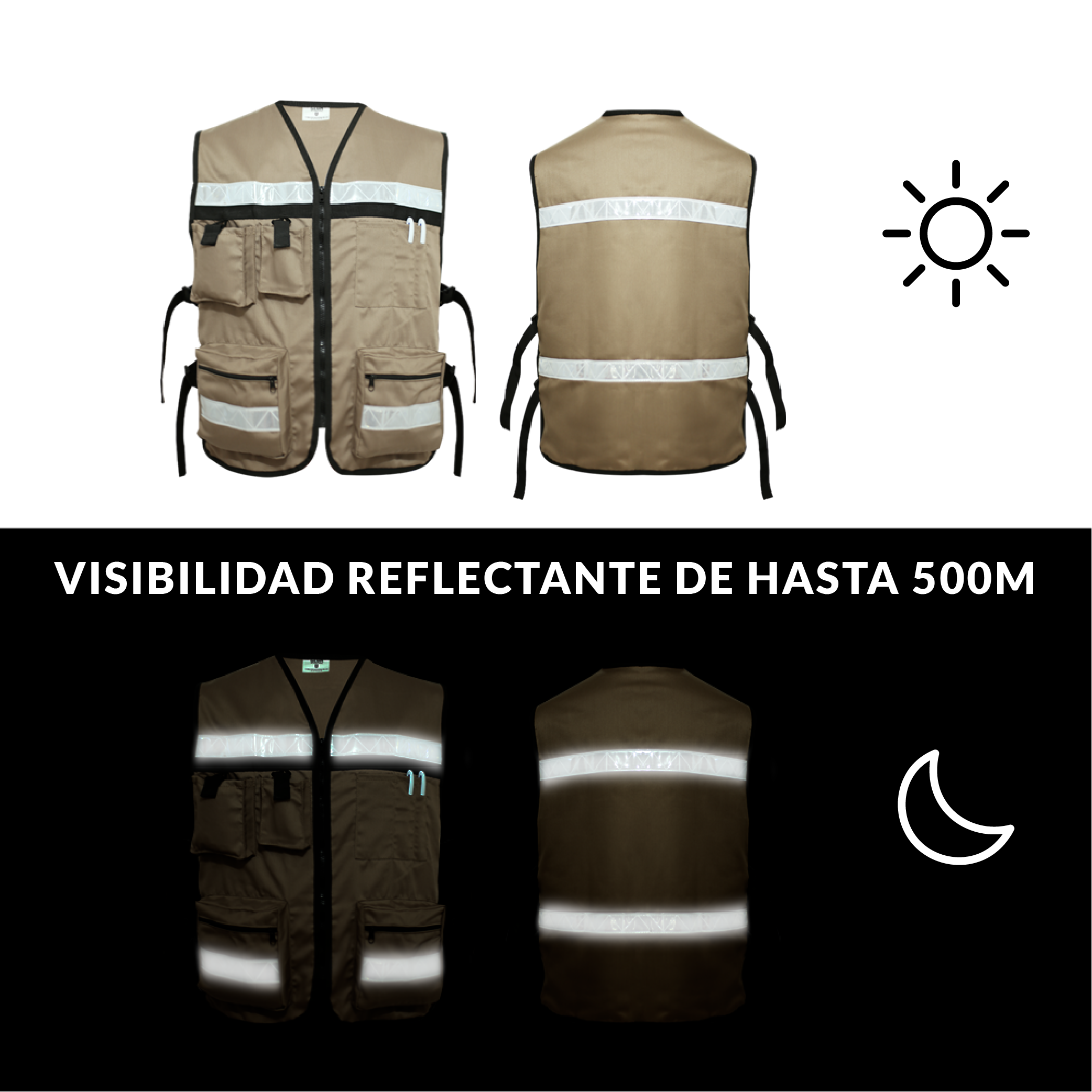 Chaleco de seguridad reflejante tipo brigadista de gran visibilidad, hecho en gabardina de algodón súper resistente, brinda una protección adicional aportando estabilidad en la temperatura corporal.