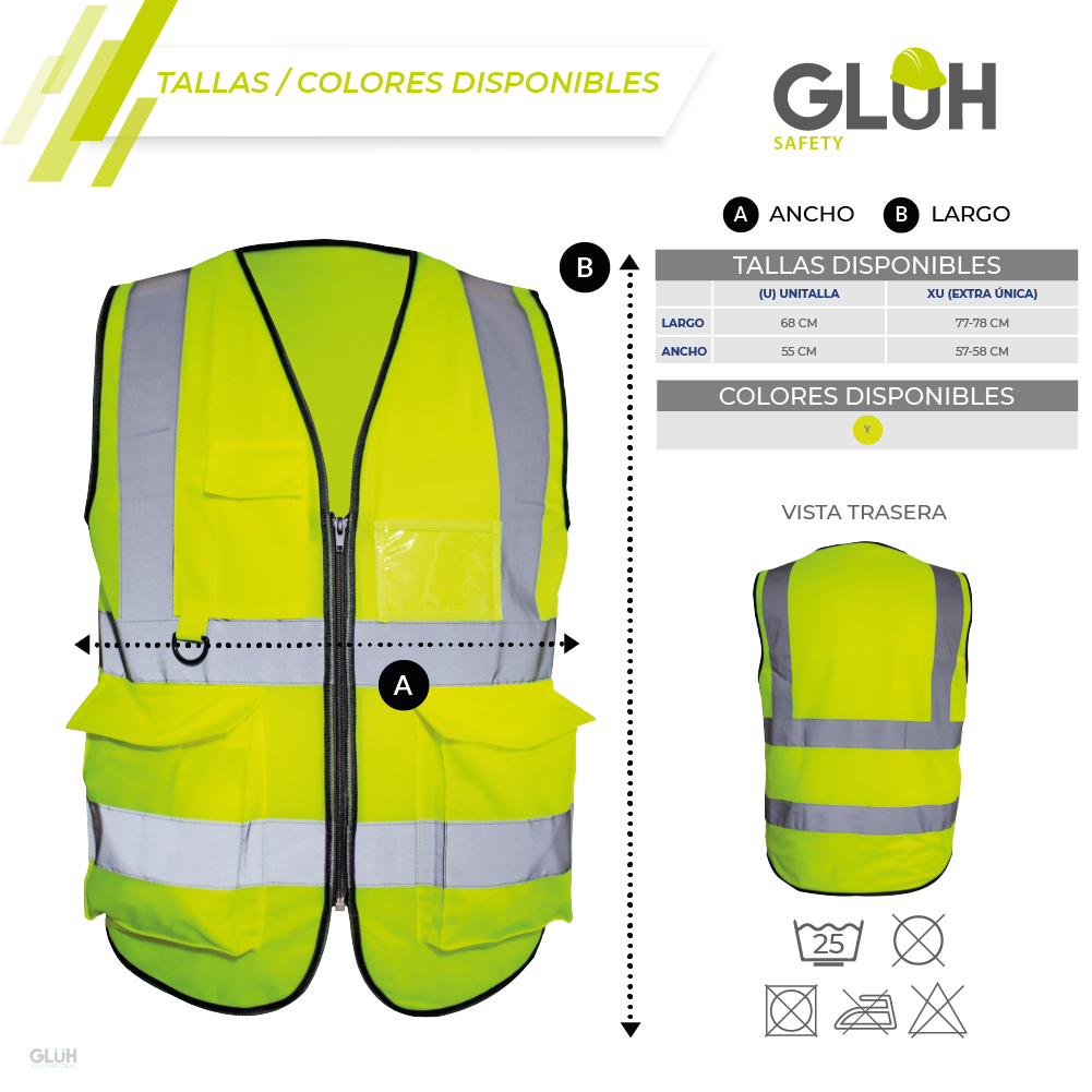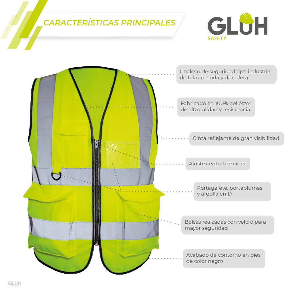El chaleco Seguridad Reflejante Industrial Sky Gluh es ideal para quienes requieren visibilidad, comodidad y resistencia en entornos laborales exigentes. Fabricado en poliéster 100%, este chaleco ofrece un diseño ultraligero y práctico, apto tanto para uso diurno como nocturno gracias a sus cintas reflejantes tipo cristal al frente y en la espalda.